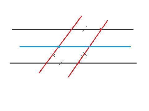 2. В одну из сторон (например в право) откладываем одинаковое расстояние от точек пересечения наклонной с прямыми;