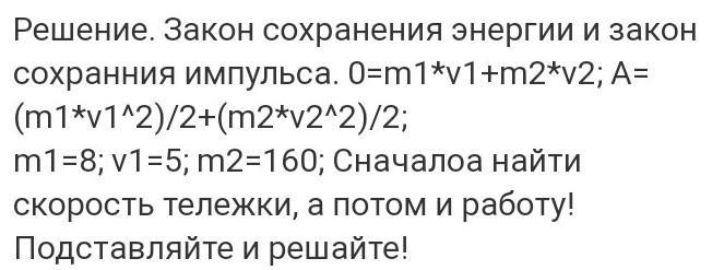 человек стоит на неподвижной тележке и бросает горизонтально камень массой m1 со скоростью V относительно Земли. Определить, какую при этом человек совершает работу, если масса тележки вместе с человеком m2.(можно с рисунком)
