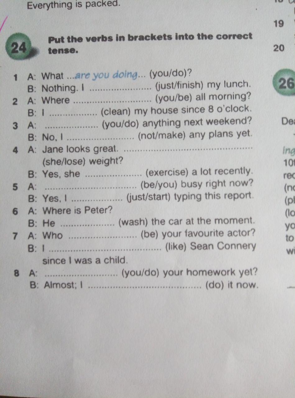 1.What are you doing?--Nothing, I have just finished my lunch.
