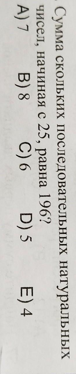 Чтобы сумма стала равной 196, сложим 7 последовательных чисел, начиная от 25 (25+26+27+28+29+30+31);