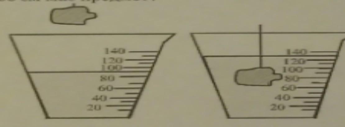 2. Кількість води в мензурках однакова. Який об'єм має предмет? (малюнок на фото)