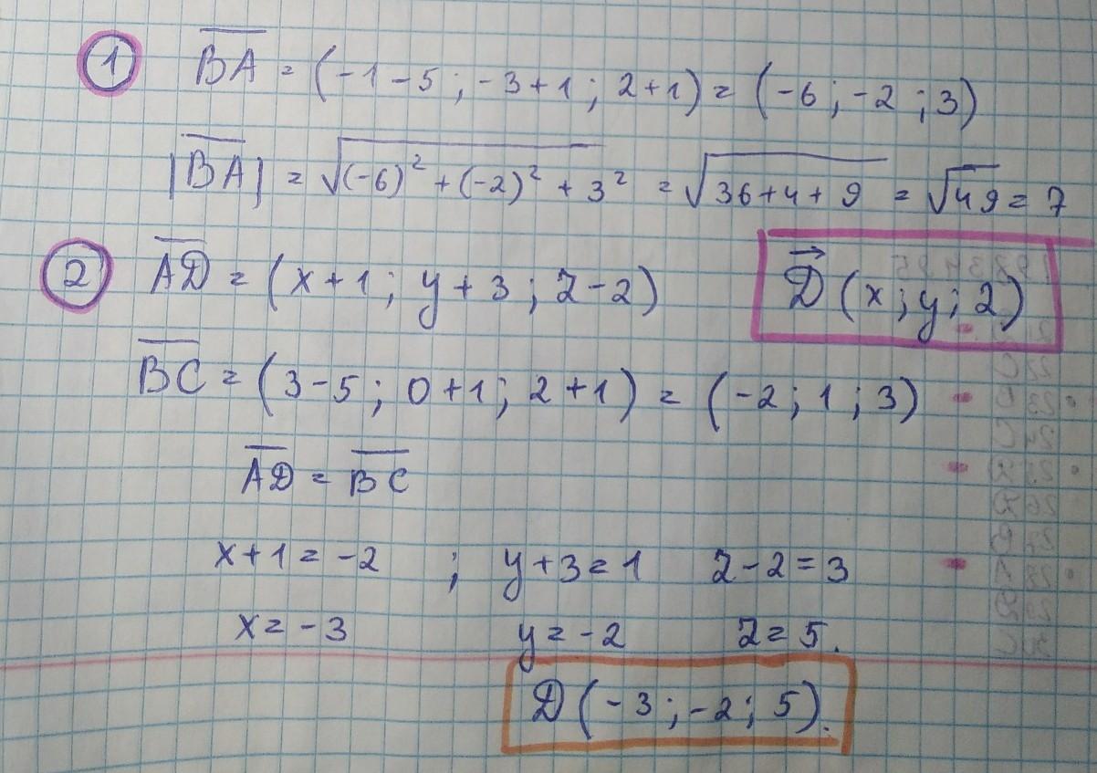Даны точки A(-1;-3;2), В(5;-1;-1), С(3;0;2). а) Найдите координаты и модуль вектора ВА . б) Найдите координаты точки D, если AD = BC Пожалуйста, с полным решением)