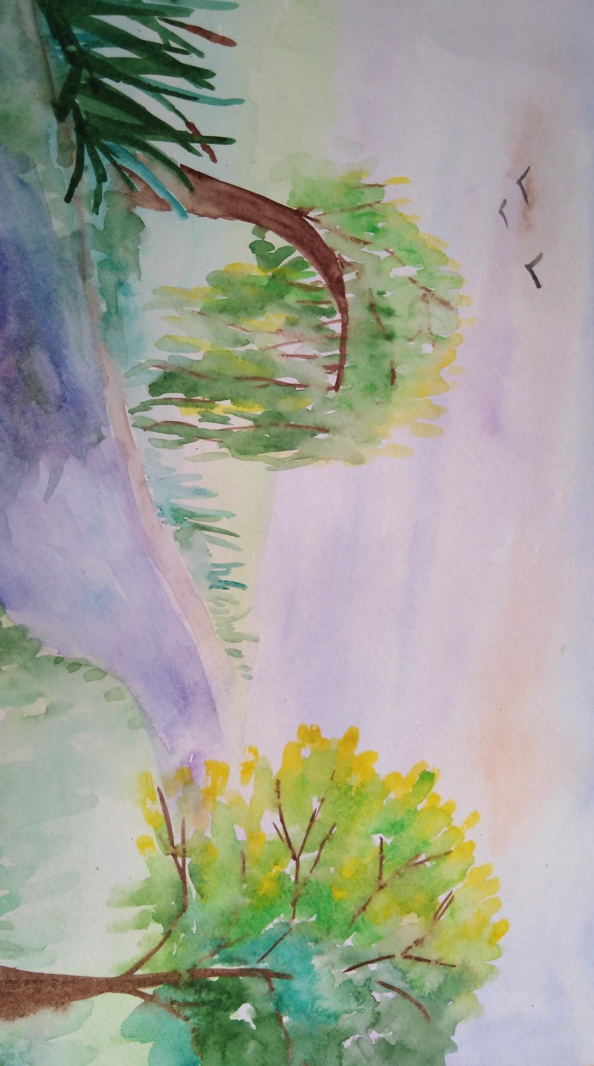 Рядом расстилается тропинка. А после идёт душистая, зелёная травка. В небе краски переливаются в разные цвета. Всё вокруг нежное и благоприятное. Какие вдохновительные краски сияющей природы!