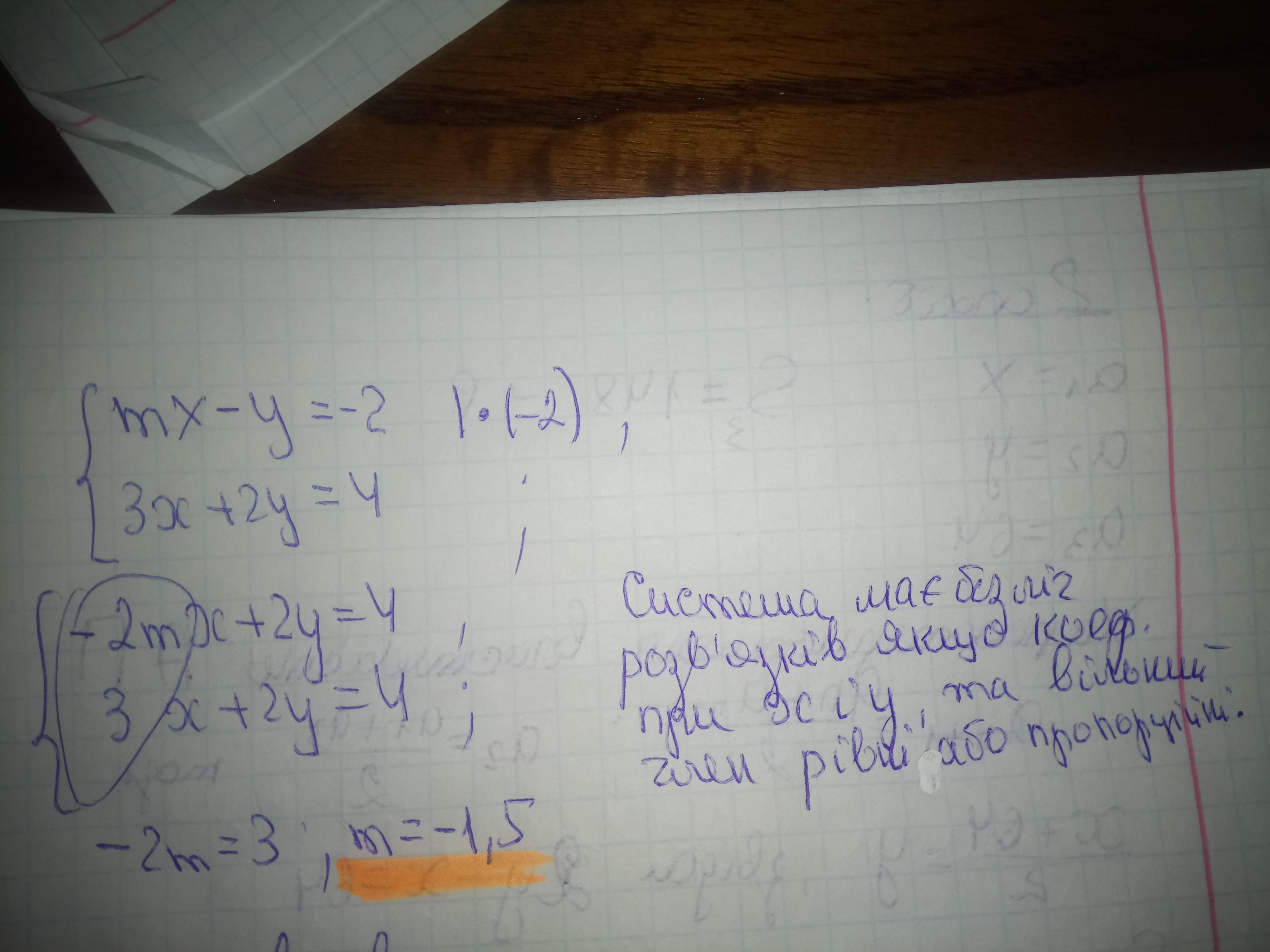 ВІДПОВІДЬ: при m=-3/2 система рівнянь має безліч розв'язків.