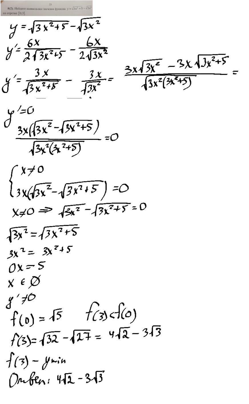 спасибо большое, можно ещё решить домножим и поделив на sqrt 3x^2+5 + sqrt 3x^2, и будет такой же ответ. спасибо за помощь