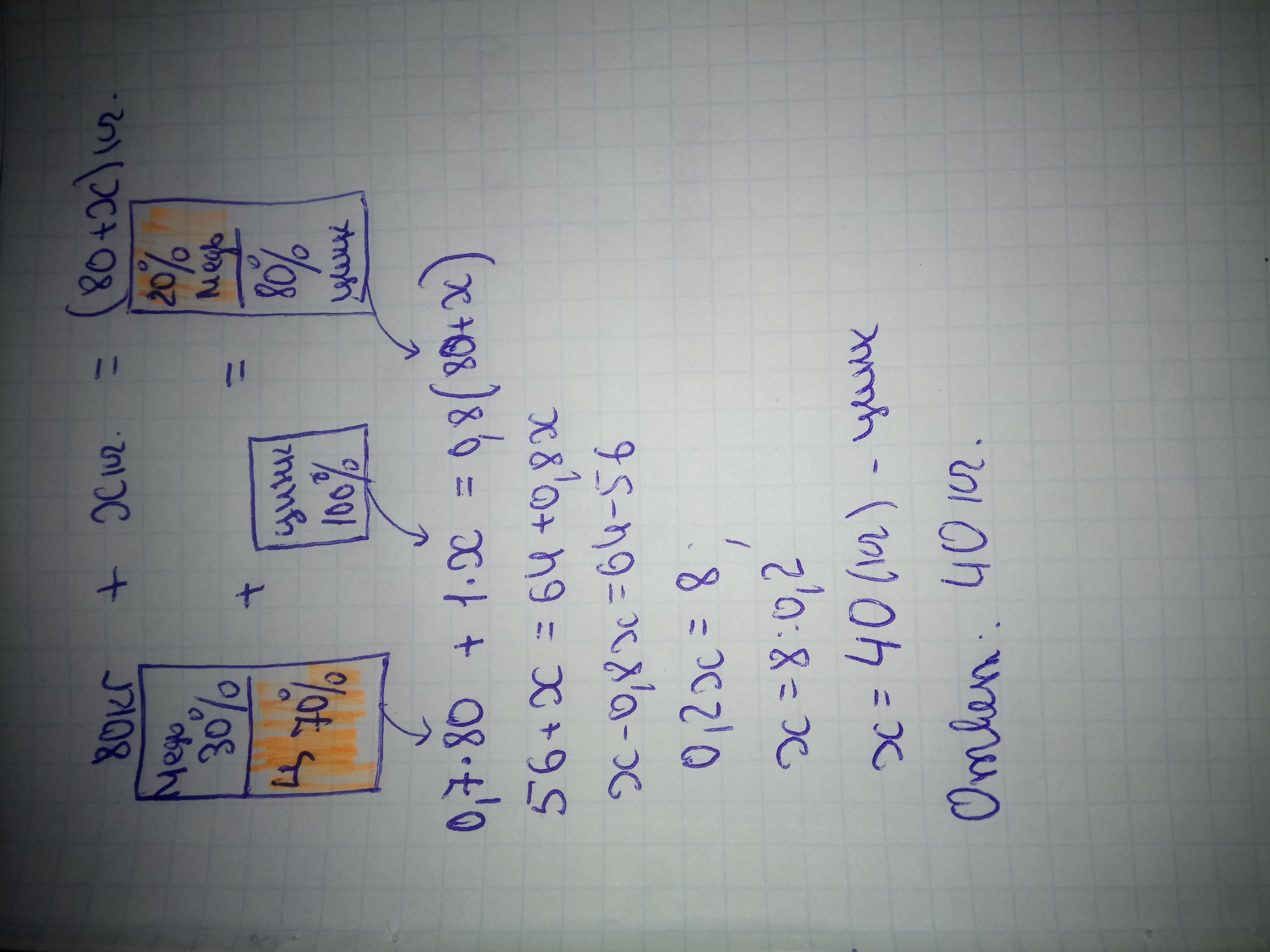 Кусок сплава меди и цинка массой 80 кг содержит 70% цинка. Какую массу цинка следует добавить к этому куску, чтобы получить новый сплав с 20% содержанием меди?