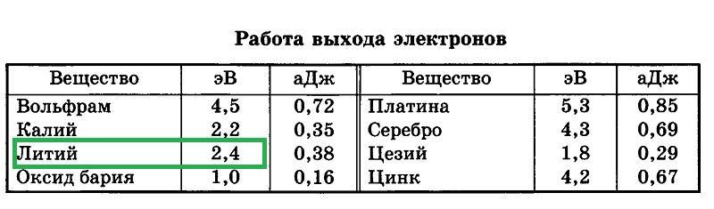 Минимальный импульс фотона, способного вызвать фотоэффект, для лития