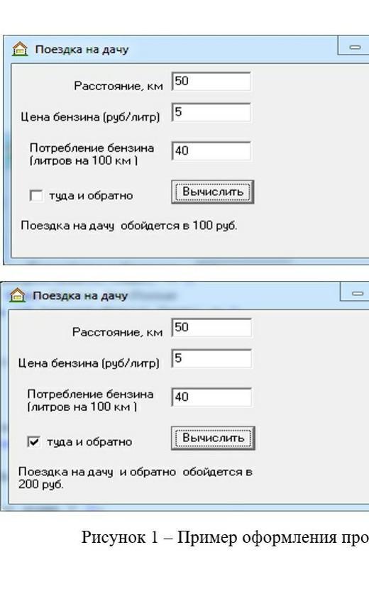 Создать проект на winform, где вводится расстояние, цена бензина, потребление бензина и вычисляется стоимость поездки на дачу. Также ставится галочка для расчета стоимости в одно направление или туда и обратно.