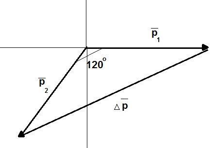 Помогите пожалуйста!!! Материальная точка массой 2,2 кг движется равномерно по окружности со скоростью 5 м/с. Чему равна скорость точки, если ее изменение импульса при повороте на 120 равно 8,6 кгм/с?