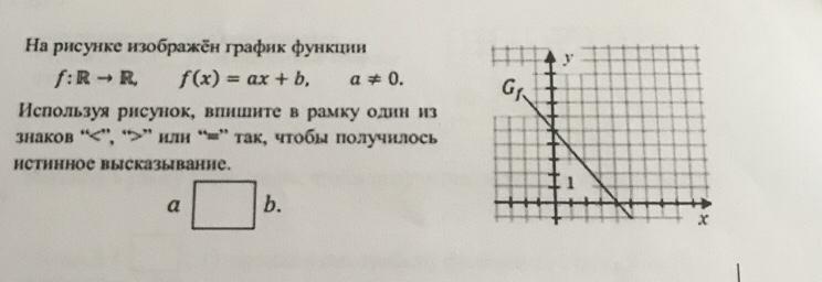 в формуле это k) функция будет идти вверх или вниз. Если "a" больше ноля (k>0) функция идёт вверх, если меньше — то наоборот. В нашем случае функция идёт вниз (на укр. "спадає"), что значит a<0. Линийная функция проходит через вись (надеюсь правильное слово) OY в точке (0;b) — это у любой линийной функции. В нашем случае функция y=ax+b проходит через OY в точке (0;4), а значит b=4. a<0 b=4, это значит что между a и b нужно поставить знак <