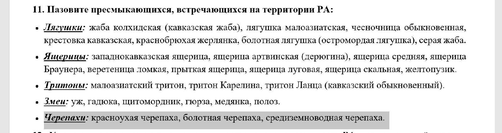 На всей территории России встречается только 4 вида черепах, поэтому добавьте ещё - Среднеазиатскую черепаху, она обитает на территории Адыгеи.
