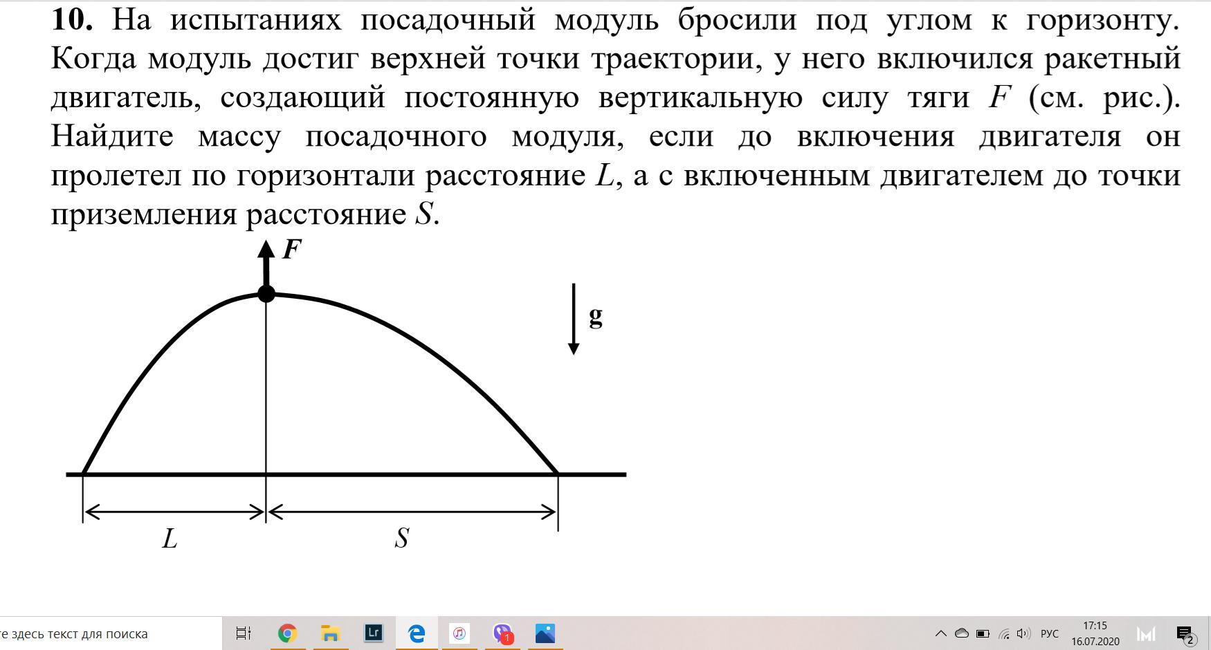 Физика 9 класс, механика. Прошу помочь решить задачу по данному разделу. Сам никак не могу додуматься как связать движение тела, брошенного под углом к горизонту, к которому потом прикладывают СИЛУ. Задача серьёзная, но и баллов даю много. Буду очень благодарен за грамотное решение, но сильно подробное тоже не требуется ;)