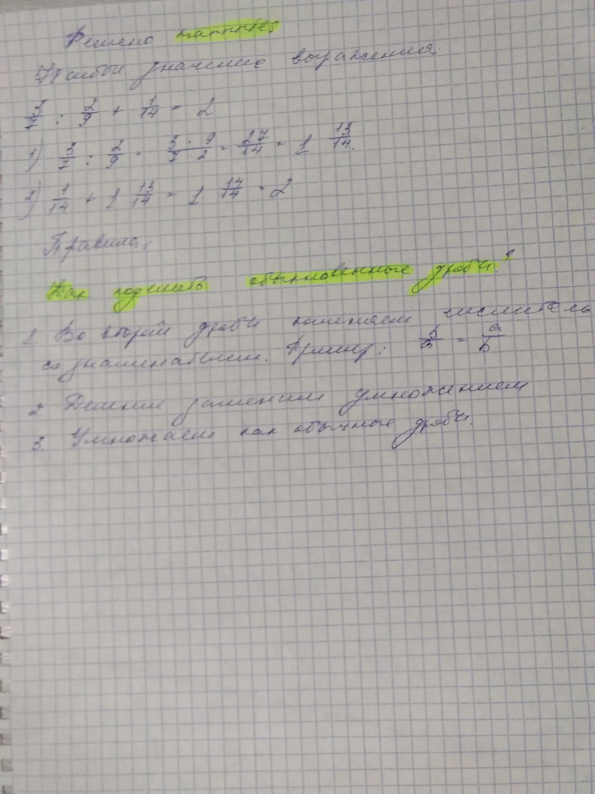 1) 3/7 : 2/9 = 3/7 * 9/2 = 27/14