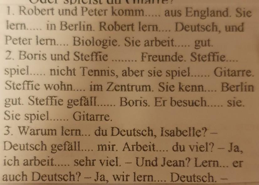 2. sind, spielt, spielt, wohnt, kennt, gefällt, besucht, spielen.