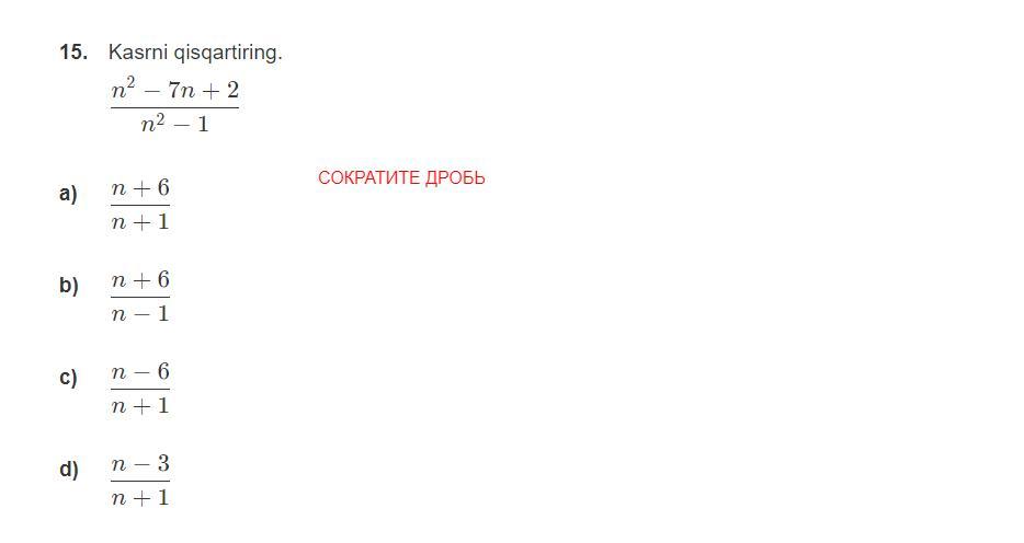 Пошаговое объяснение: если бы дробь была (n²-7n+6)/(n²-1)=