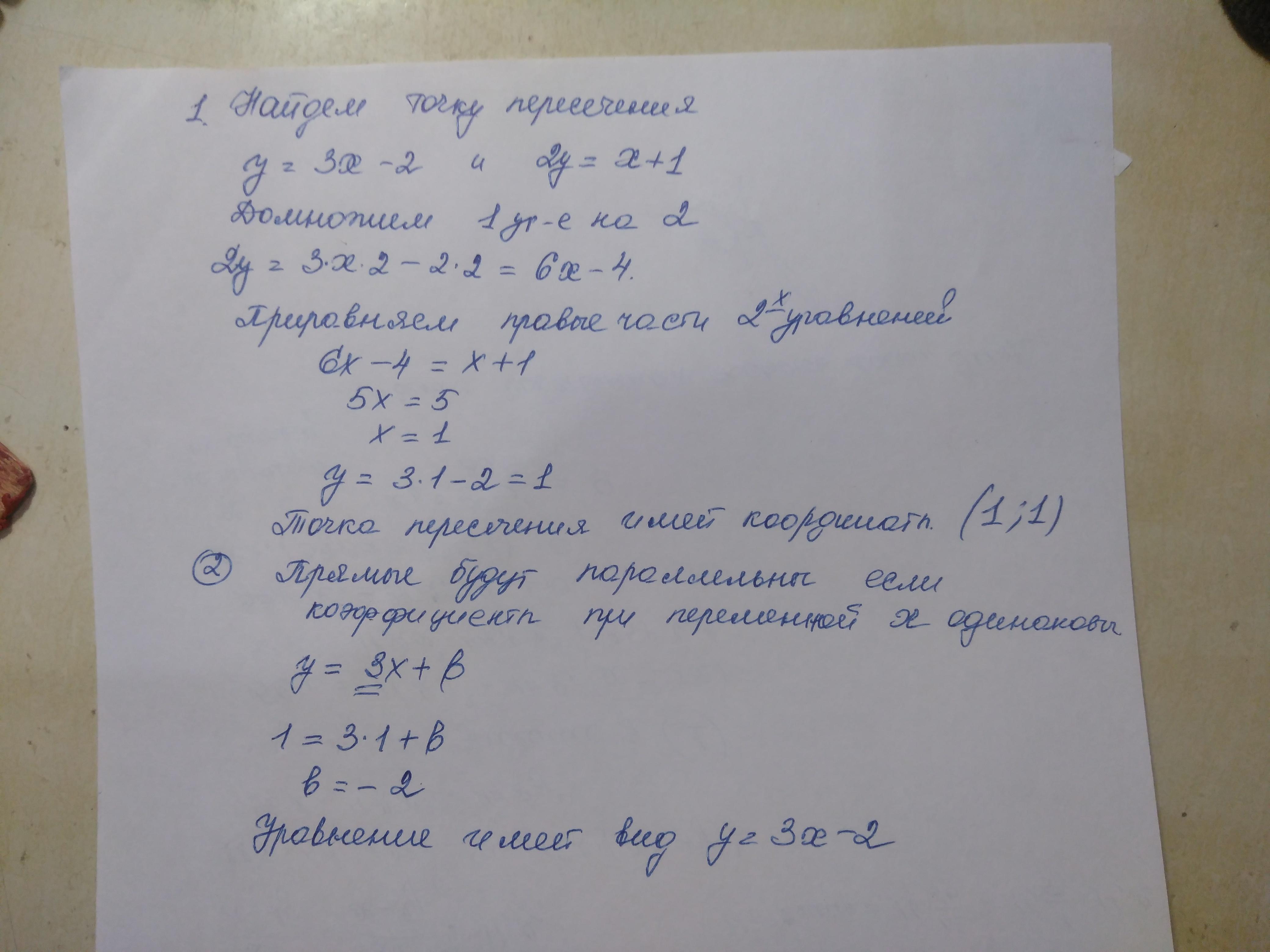 напишите уравнение прямой, проходящей через точку пересечения прямых