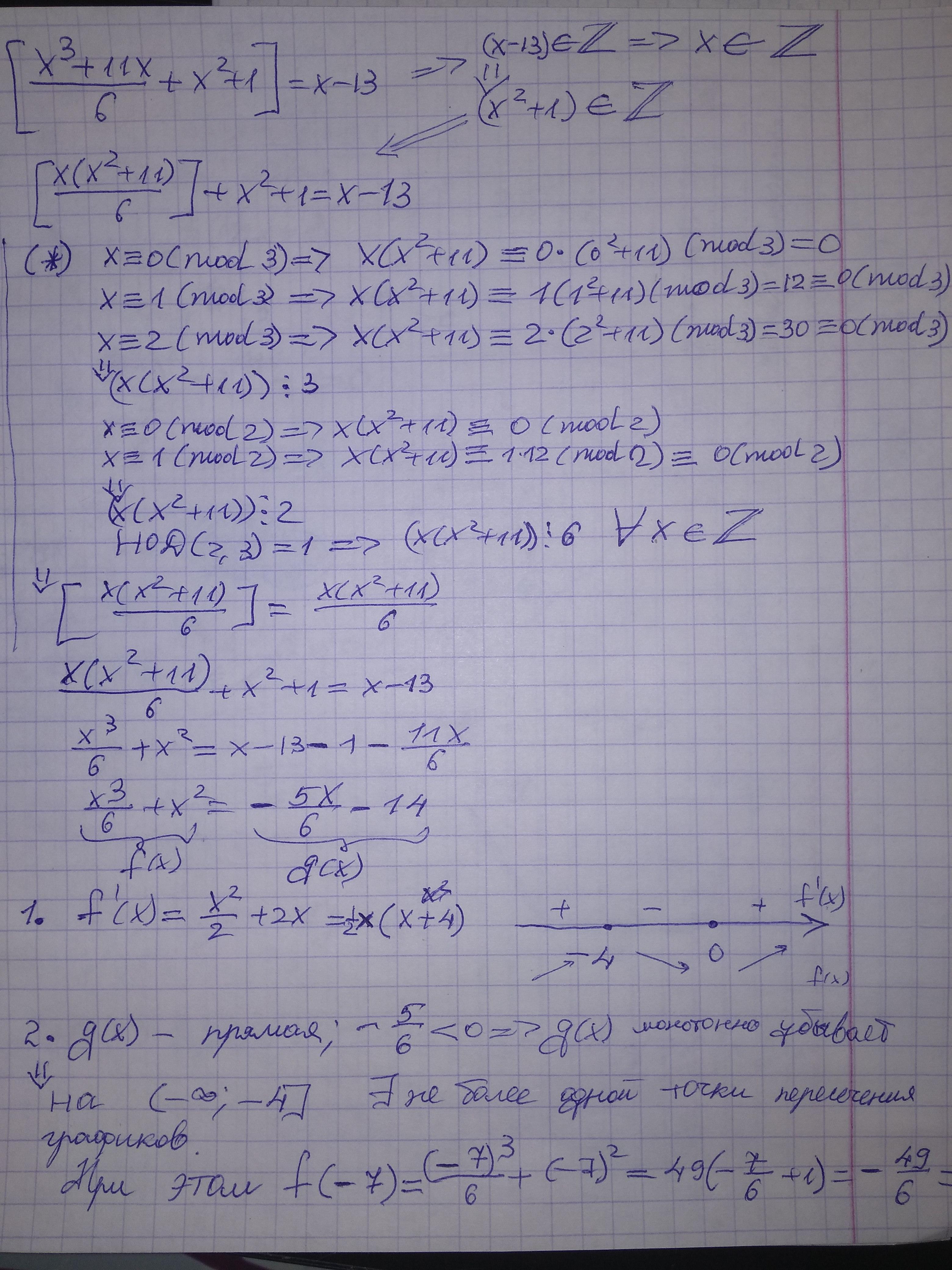 Вообще, после нахождения корня x=-7 можно было просто кубический многочлен поделить на (x+7), и решить квадратное уравнение.