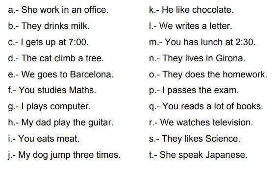 В каждом предложении неправильная форма глаголов. Ниже - исправленные варианты