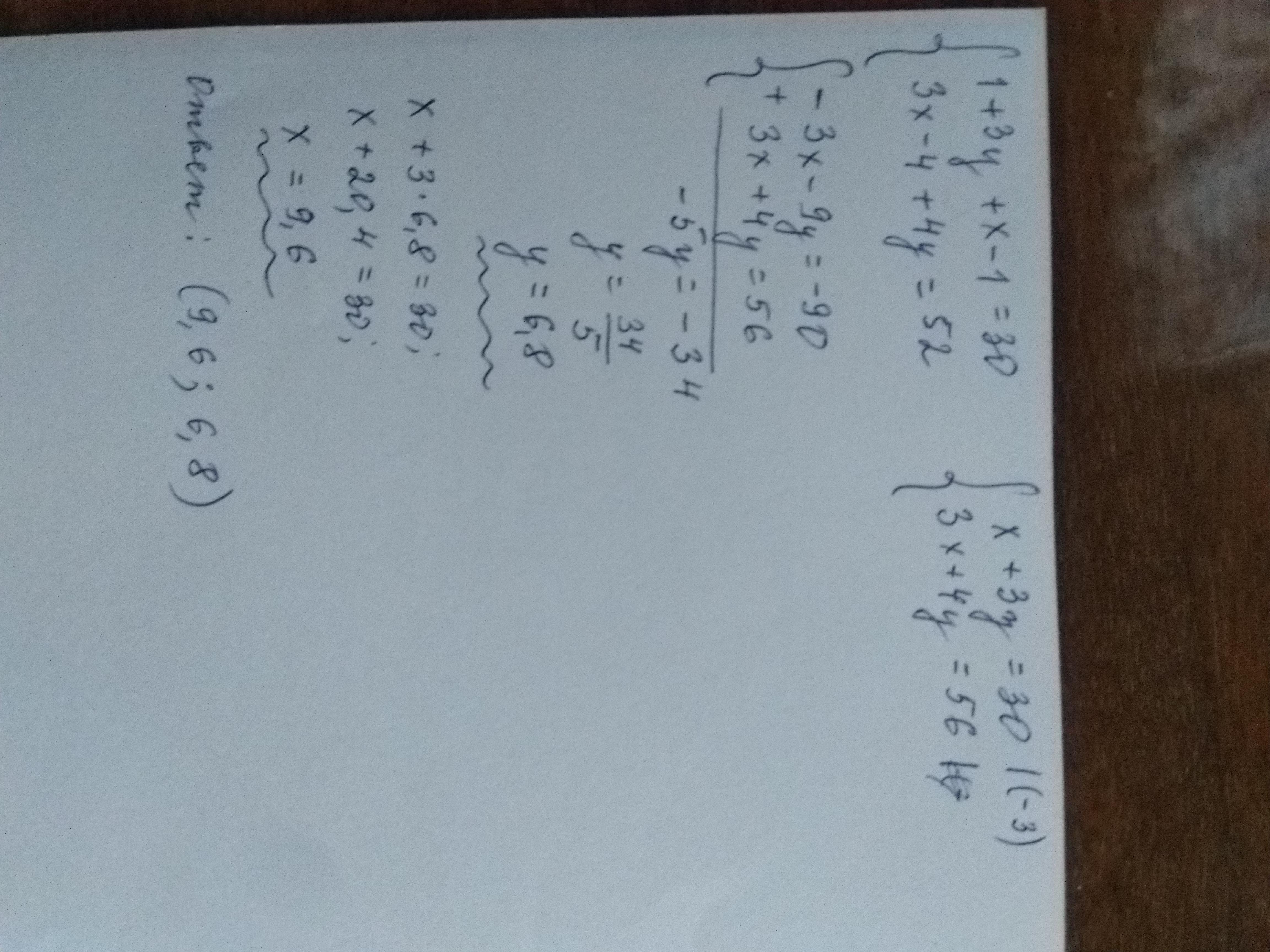 {(1+3у)/4+(х-1)/4=15/2 умножаем на 4