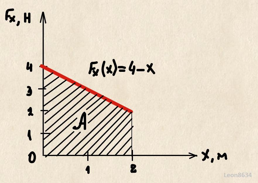 тело движется вдоль оси Х. На него действует сила, проекция которой на эту ось F= 4-x (в СИ).Укажите работу этой силы (в Дж) при перемещении тела из точки х = 0 точку х = 2 м.