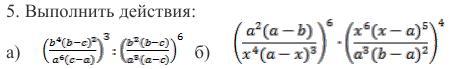 a)\ \ \Big(\dfrac{b^4(b-c)^2}{a^6(c-a)}\Big)^3:\Big(\dfrac{b^2(b-c)}{a^3(a-c)}\Big)^6=\dfrac{b^{12}(b-c)^6}{a^{18}(c-a)^3}\cdot \dfrac{a^{18}(a-c)^6}{b^{12}(b-c)^6}=\\\\\\=\dfrac{(c-a)^6}{(c-a)^3}=(c-a)^3\\\\\\b)\ \ \Big(\dfrac{a^2(a-b)}{x^4(a-x)^3}\Big)^6\cdot \Big(\dfrac{x^6(x-a)^5}{a^3(b-a)^2}\Big)^4=\dfrac{a^{12}(a-b)^6}{x^{24}(a-x)^{18}}\cdot \dfrac{x^{24}(x-a)^{20}}{a^{12}(b-a)^8}=\\\\\\=\dfrac{(a-b)^{6}(x-a)^{20}}{(x-a)^{18}(a-b)^8}=\dfrac{(x-a)^2}{(a-b)^2}