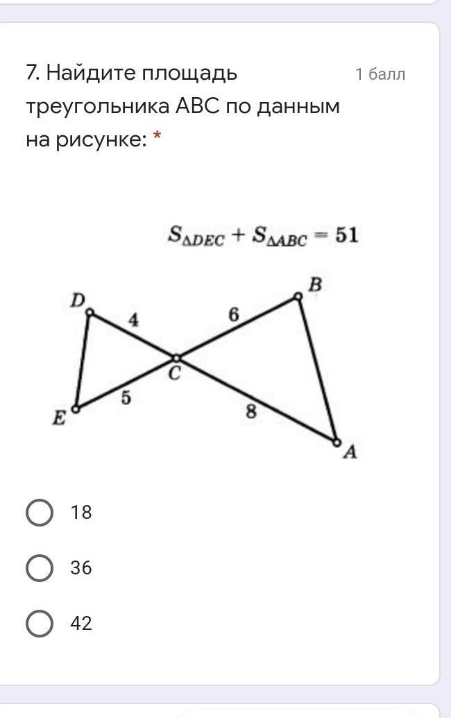 При S abc=42, S cde=9 такого не может быть так как S abc=S cde *4,..