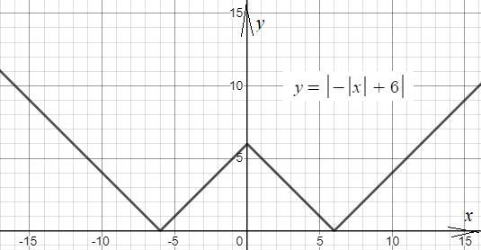 График y=|-|x|+6| получен из графика y=-|x|+6 зеркальным отражением относительно оси Ох которая расположена ниже оси Ох ( рис.4)