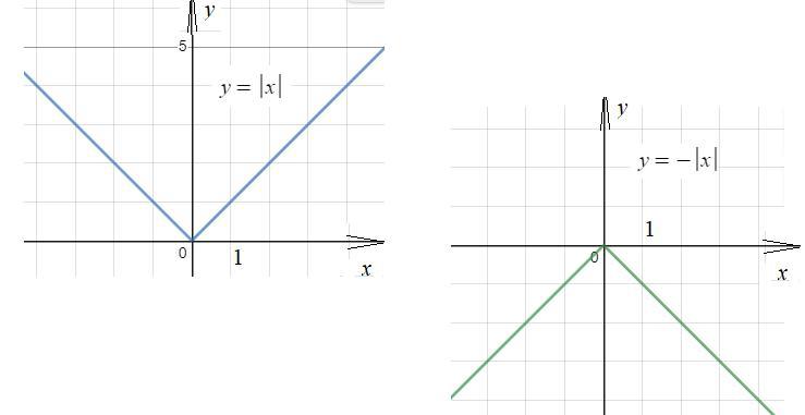 График y=-|x| получен из него зеркальным отражением относительно оси Ох ( рис.2)