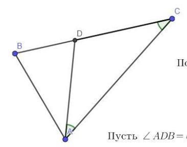 AD = DC ⇒ ∠DAC =∠C=α ; ∠ADB= ∠DAC+∠C = 2α