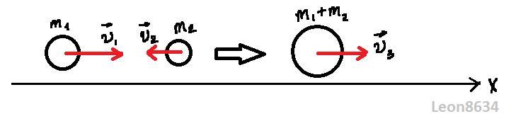 Изобразим тела до и после столкновения. Согласно закону сохранения импульса, суммарный импульс замкнутой системы тел остается неизменным, т.е. в проекции на ось х можно записать