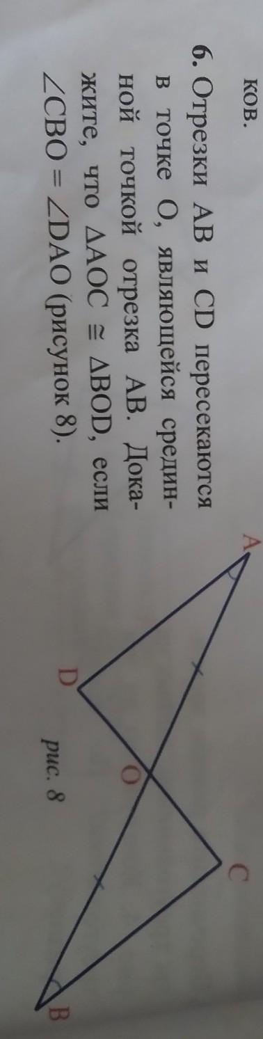<АОД=<СОВ вертикальные углы. Второй признак равенства треугольников, если сторона и два прилежащих к ней угла равны, то треугольники равны