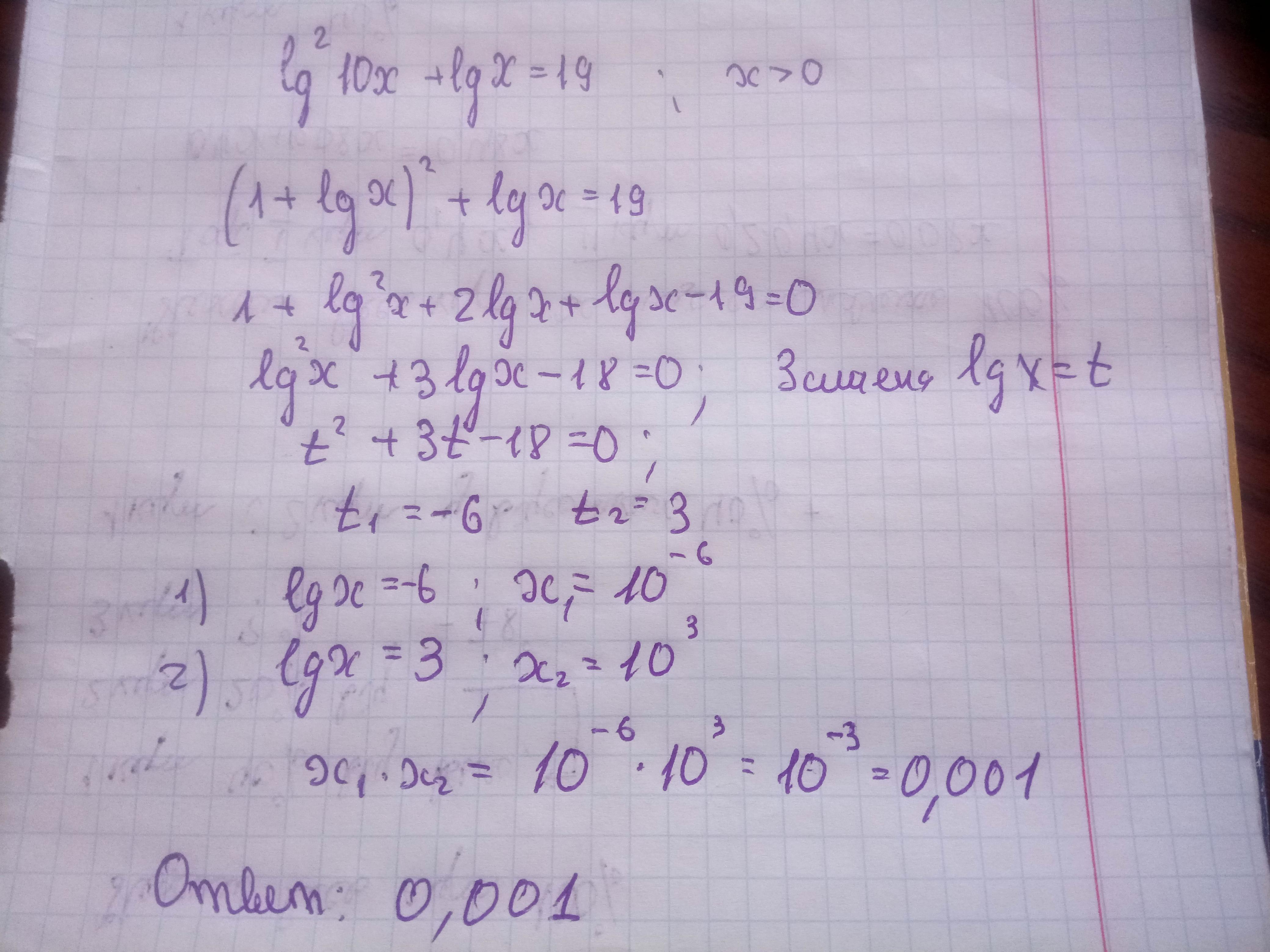 ОДЗ х∈(0;+∞); lg²(10x)=(lgх+lg10)²=(lgх+1)²
