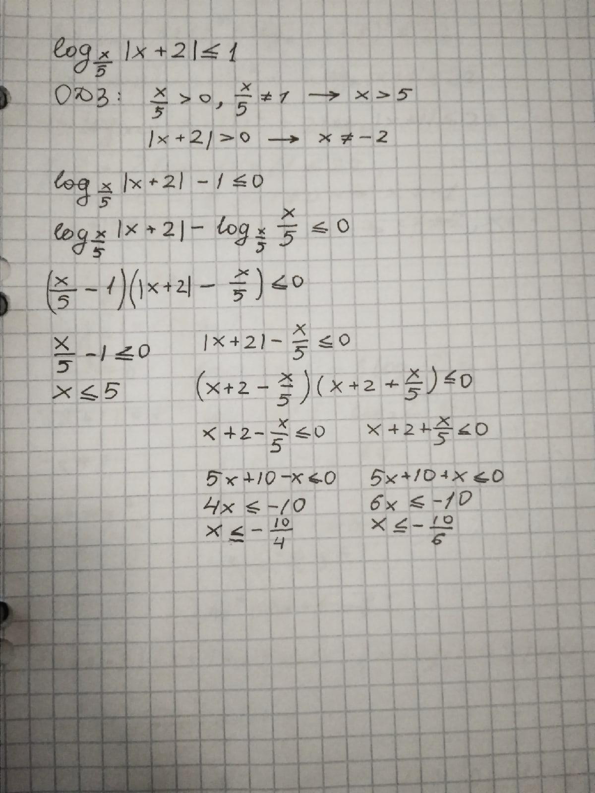 Рассмотрим ((х/5)-1)(Ix+2I-(x/5))≤0 на ОДЗ;