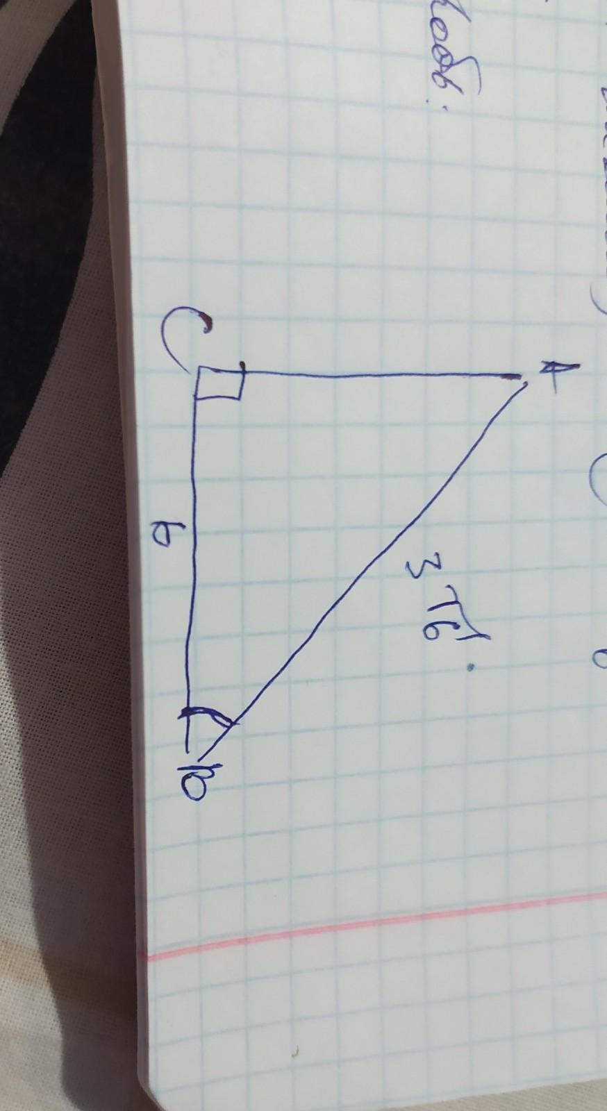 если угол С=90°, то АС и ВС- катеты, а АВ - гипотенуза. Найдём катет АС по теореме Пифагора: АС²=АВ²-ВС²=(3√6)²-6²=9×6-36=