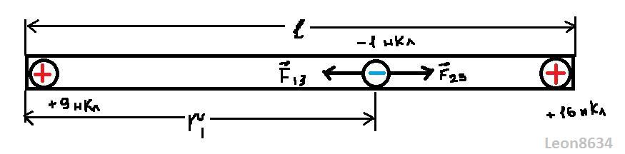 Чтобы отрицательный заряд находился в равновесии, равнодействующая всех сил, действующих на него должна быть равна нулю. Это достигается при условии, что