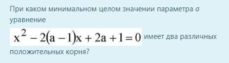 Учитывая (1) и (2) получаем: a>1, для того, чтобы уравнение имело положительные корни.