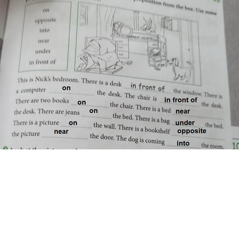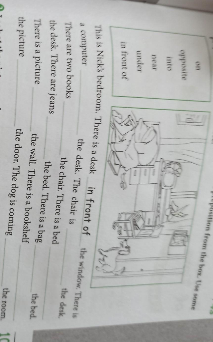 Посмотрите на картинку и вставьте правильную предлог из коробки. Используйте несколько раз. предлоги