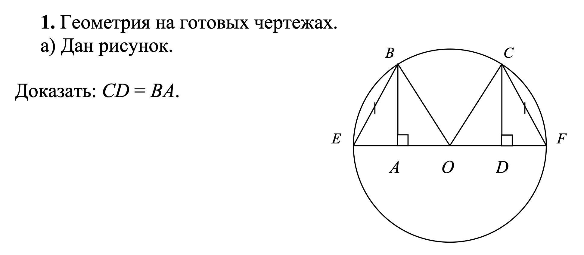 дуга ВС- общая ,дуга ЕВ= дуге СФ (дуги ,стянутые равными хордами) Значит сумма равных величин равныВС+ЕВ=ВС+СФ,а значит и вписанные углы,опирающиеся на эти дуги равны
