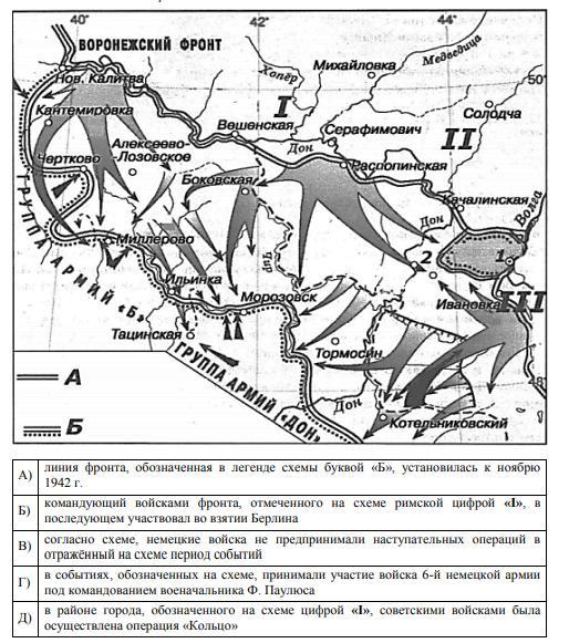 А)Линия фронта под буквой Б установилась 30 ноября 1942 года, правильно было бы написать к декабрю, ответ А не верен.