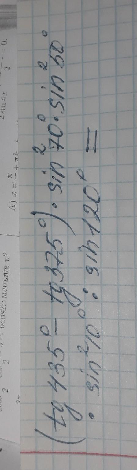 т75) Вычислите: (tg435° - tg375°)×sin^2(70°)×sin^2(50°)×sin^2(10°)÷sin(120°)