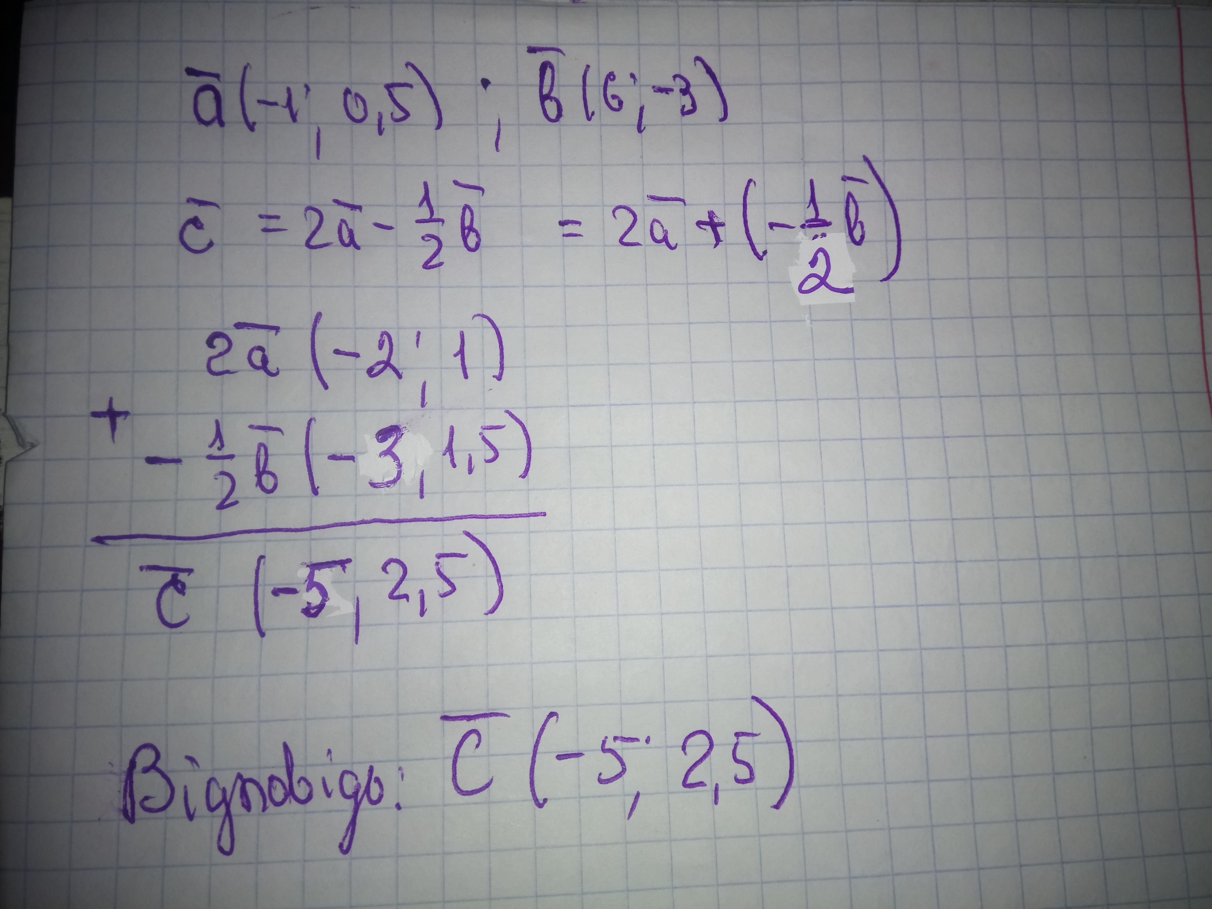 Знайдіть координати вектора c=2a -1/2b якщо дано вектори а(-1;05) b( 6;-3)