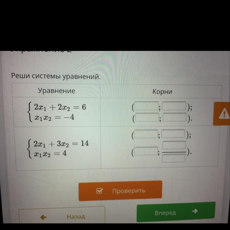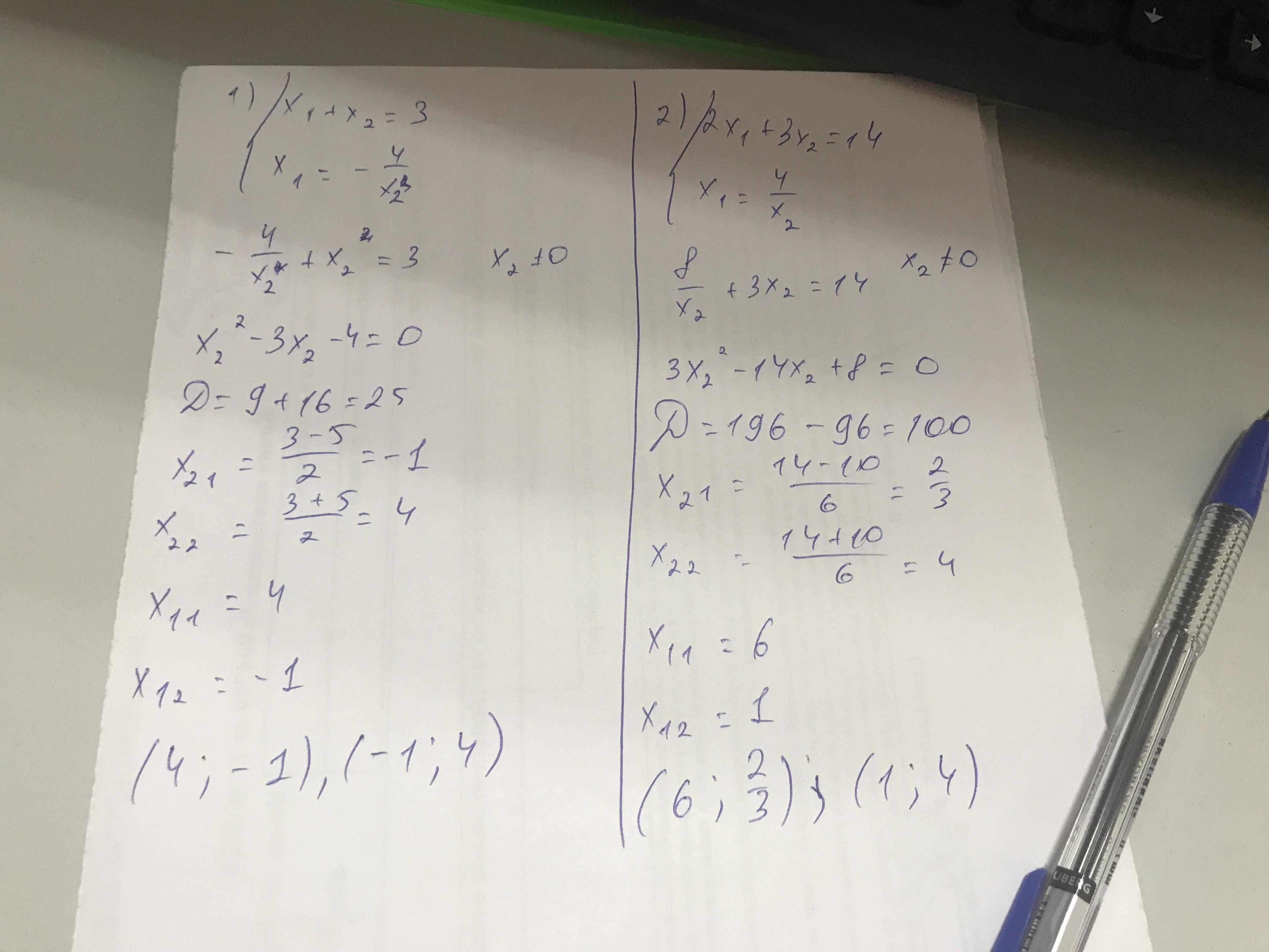 -х2²+3х2+4=0 домножимо на -1 х2²-3х2-4=0 знайдемо дискриминант і корні: Д=5 і тоді х2(1)=-1 і другий √ х2(2)=4 знайдемо х1 х1(1)=3+1=4