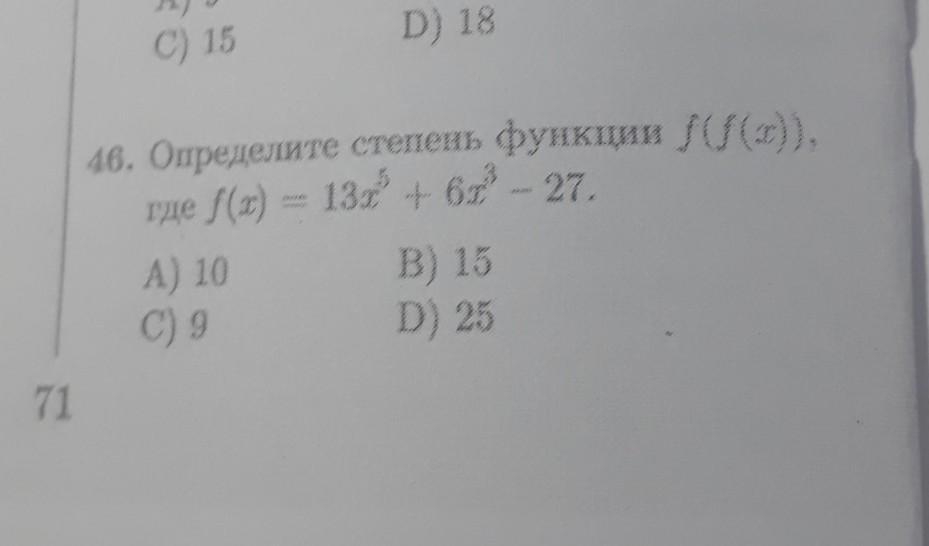 ф46) Определите степень функции f(f(x)), где f(x)= 13x^5 +6x^3 -27 .