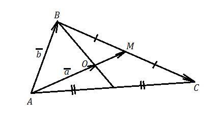 О - точка пересечения медиан треугольника ABC и вектор AO = вектор a, AB = b. Разложить вектор BC по векторам a и b.