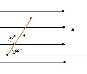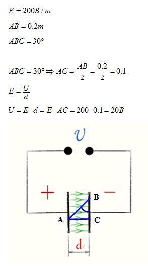 Напруженість горизонтального однорідного електричного поля 200 В/м. Визначте напругу між двома довільними точками, розташованими на відстані 20 см в напрямку 30º до вертикалі. А 10 В Б 20 В В 30 В Г 40 В
