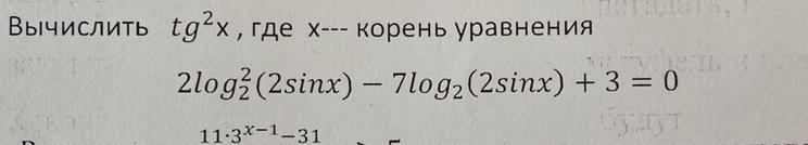 Вычислить tg2x , где X--- корень уравнения