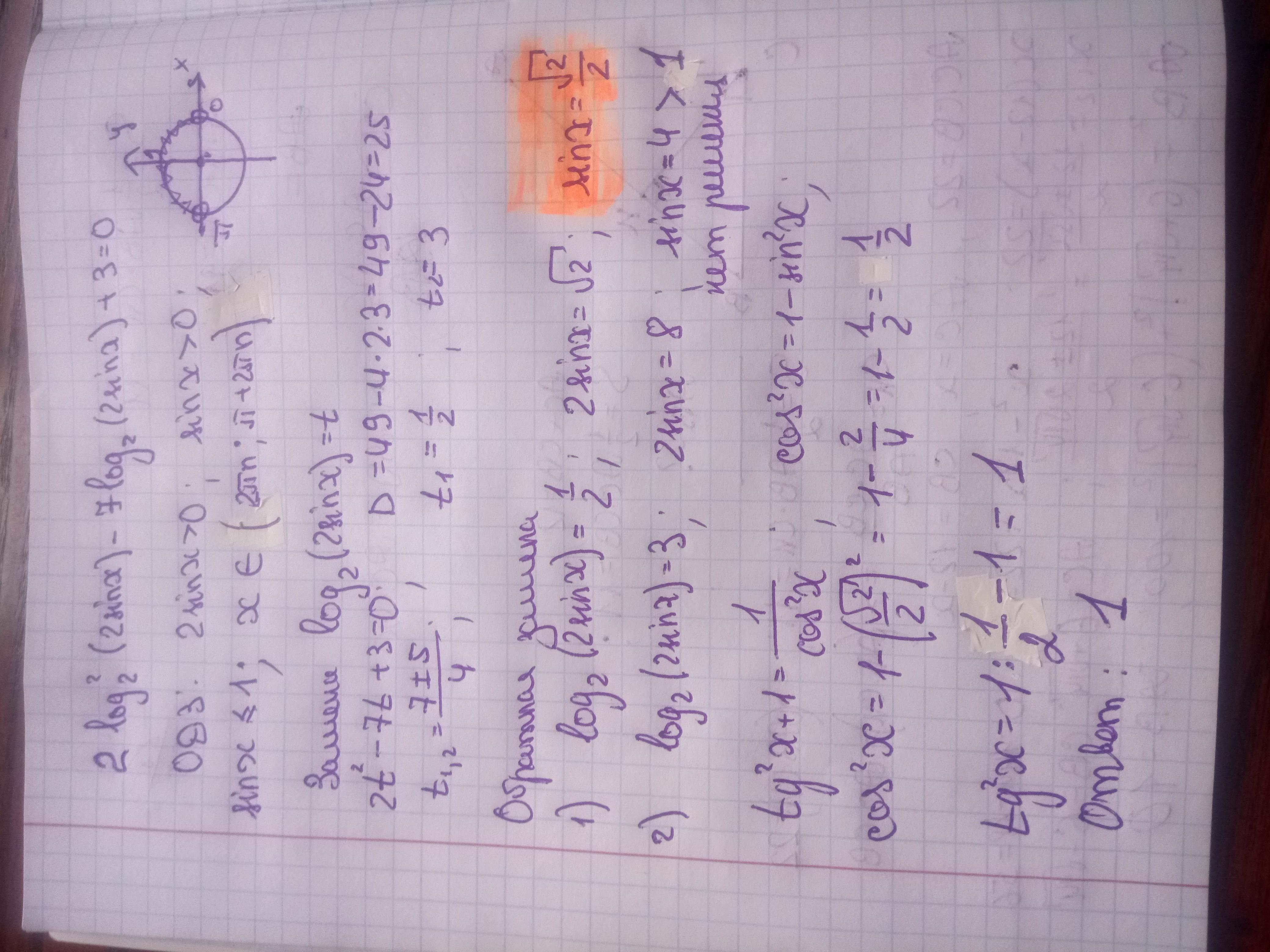2log3 (2sinx) — 7logy (2sinx) + 3 = 0
