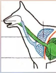 2. Потом он движется к гортани. (также с помощью гортани мы можем разговаривать, а животные могут издавать разные звуки, так как в гортани находятся голосовые связки)