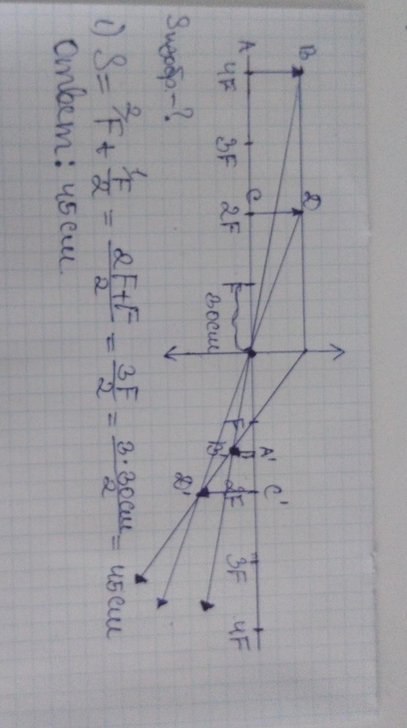 Божья коровка бежит вдоль главной оптической оси собирающей линзы. Фокусное расстояние линзы F=30см. Какое расстояние пройдет изображение божьей коровки в линзе, если она сама переместится из точки 4F в точку 2F?