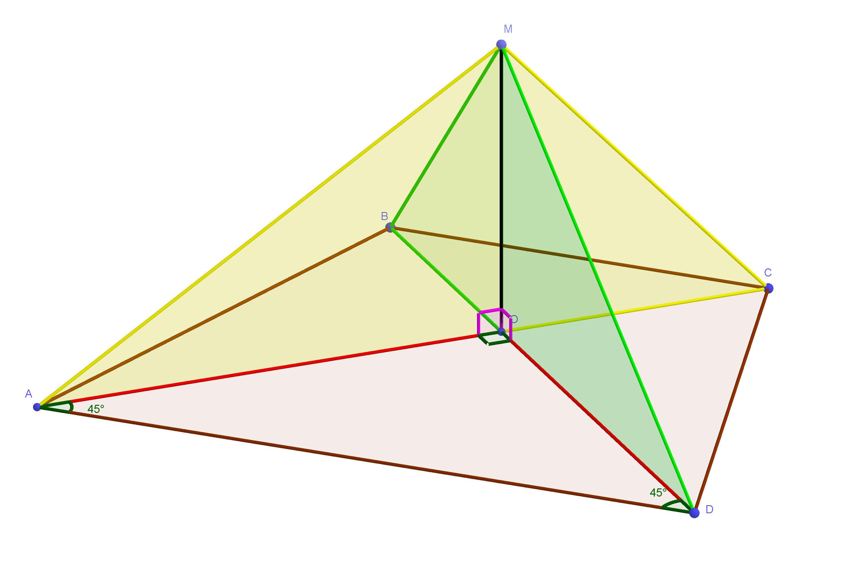 MO перпендикулярна плоскости трапеции, значит MO ⊥ BD и MO ⊥ AC